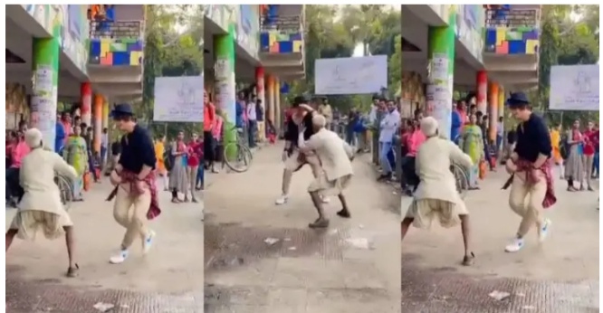 ವಿದೇಶಿಗನೊಬ್ಬನು ಬಾಲಿವುಡ್ ಹಾಡಿಗೆ ರಸ್ತೆಯಲ್ಲಿ ಡ್ಯಾನ್ಸ್ ಮಾಡುತ್ತಿದ್ದು, ಇದರಿಂದ ಪ್ರೇರಣೆಗೊಂಡ ಅಜ್ಜ ಅವನ ಜೊತೆ ಸಖತ್ ಆಗಿ ಸ್ಟೆಪ್ ಹಾಕಿದ್ದಾರೆ. ಅಲ್ಲಿ ನೆರೆದಿದ್ದ ಜನಸಮೂಹವು ಇವರ ಡ್ಯಾನ್ಸ್ ನೋಡಿ ಫುಲ್ ಎಂಜಾಯ್ ಮಾಡುತ್ತಿರುವುದು ವೀಡಿಯೋದಲ್ಲಿ ದಾಖಲಾಗಿದೆ. ವಿದೇಶಿಗ ತನಗೆ ಸ್ಟೆಪ್ ಹೇಳಿಕೊಡುತ್ತಿರುವುದನ್ನು ಲೆಕ್ಕಿಸದೆ, ಅಜ್ಜ ತನಗೆ ತೋಚಿದ ಸ್ಟೆಪ್ ಅನ್ನು ಹಾಕಿ ಕುಣಿದಿದ್ದಾರೆ. ಹಾಗಿದ್ದರೂ ಅಜ್ಜನ ಸ್ಟೆಪ್ಸ್ ಮನಸ್ಸು ಗೆಲ್ಲುತ್ತದೆ.