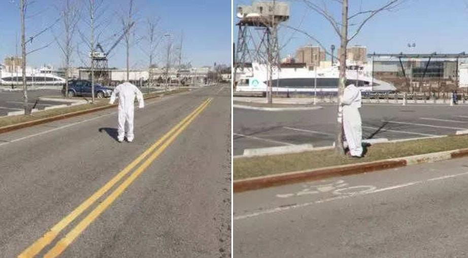 ಗೂಗಲ್ ಮ್ಯಾಪ್ ಬಳಕೆದಾರರು ಸೂಟ್ ಮಾದರಿಯ ದಿರಿಸೊಂದನ್ನು ಧರಿಸಿದ ಆಕೃತಿಯೊಂದು ಬೀದಿಗಳಲ್ಲಿ ಅಡ್ಡಾಡುವ ಚಿತ್ರಗಳನ್ನು ಗಮನಿಸಿದ್ದಾರೆ. ಅದು ಸಾಮಾನ್ಯ ಬೀದಿಯೂ ಅಲ್ಲ, ಬದಲಾಗಿ ನ್ಯೂಯಾರ್ಕ್ನ ಬ್ರೂಕ್ಲಿನ್ನ ನೇವಿ ಯಾರ್ಡ್! ಅಲ್ಲಿ ಈ ಆಕೃತಿ ಕಾಣಿಸಿಕೊಂಡಿದ್ದು, ಬೀದಿಗಳಲ್ಲಿ ಓಡಾಡುವ, ಮರದ ಬಳಿ ನಿಂತಿರುವ ಚಿತ್ರಗಳು ವೈರಲ್ ಆಗಿವೆ.