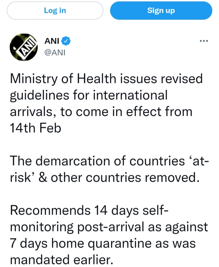 ಕೇಂದ್ರ ಆರೋಗ್ಯ ಸಚಿವಾಲಯವು ಅಂತರಾಷ್ಟ್ರೀಯ ಪ್ರಯಾಣಿಕರಿಗೆ ಫೆ.14 ರಿಂದ ಅನ್ವಯವಾಗುವಂತೆ ಮಾರ್ಗಸೂಚಿಗಳನ್ನು ಪರಿಷ್ಕರಿಸಿದೆ.