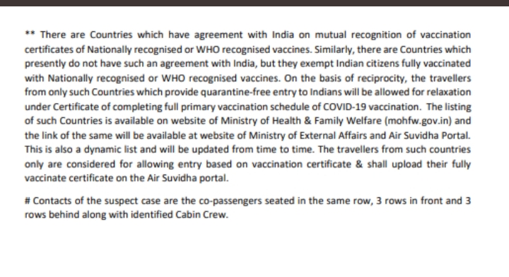ಅಪಾಯದಲ್ಲಿರುವ ಹಾಗೂ ಉಳಿದ ದೇಶಗಳ ಗಡಿರೇಖೆಗಳನ್ನು ಹೊಸ ಮಾರ್ಗಸೂಚಿಯಲ್ಲಿ ತೆಗೆದು ಹಾಕಲಾಗಿದೆ. ಹೊಸ ಮಾರ್ಗಸೂಚಿಗಳ ಪ್ರಕಾರ ಈ ಹಿಂದೆ ಕಡ್ಡಾಯ ಮಾಡಿದ್ದ 7 ದಿನಗಳ ಹೋಂ ಕ್ವಾರಂಟೈನ್ ಗಳ ಬದಲಾಗಿ 14 ದಿನಗಳ ಸ್ವಯಂ ಮೇಲ್ವಿಚಾರಣೆ ವಿಧಾನವನ್ನು ಅಂತರಾಷ್ಟ್ರೀಯ ಪ್ರಯಾಣ ಮಾಡಿ ದೇಶಕ್ಕೆಆಗಮಿಸಿದವರಿಗೆ ಶಿಫಾರಸು ಮಾಡಲಾಗಿದೆ.