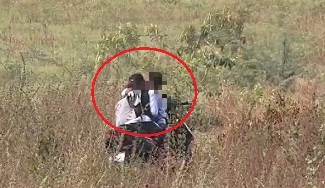ಪ್ರೇಮಿಗಳು ಮುಳ್ಳಿನ ಪೊದೆಯಲ್ಲಿ ಬೈಕ್‌ ನಿಲ್ಲಿಸಿ, ಕಾಲೇಜು ಯೂನಿಫಾರ್ಮ್‌ನಲ್ಲೇ ಪ್ರೇಮಿಗಳು ಲಿಪ್‌ಲಾಕ್‌ ಮಾಡಿದ್ದಾರೆ. ಇದನ್ನು ಕಂಡ ಸ್ಥಳೀಯರು ಬೆದರಿಸಿದ್ದಾರೆ. ಕೂಡಲೇ ಬೈಕ್‌ ತಗೊಂಡು ಸ್ಥಳದಿಂದ ಓಡಿದ್ದಾರೆ ಎಂದು ತಿಳಿದು ಬಂದಿದೆ.