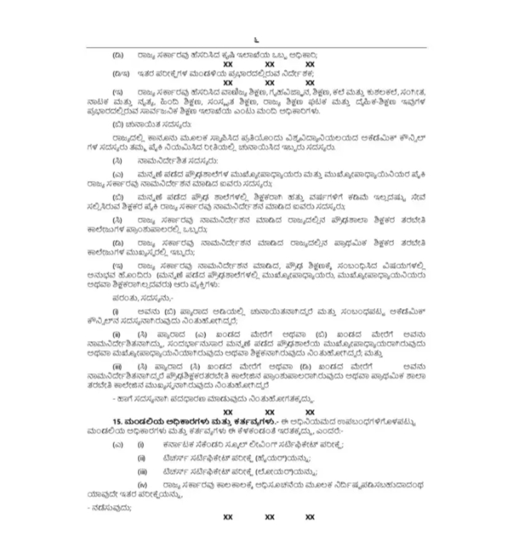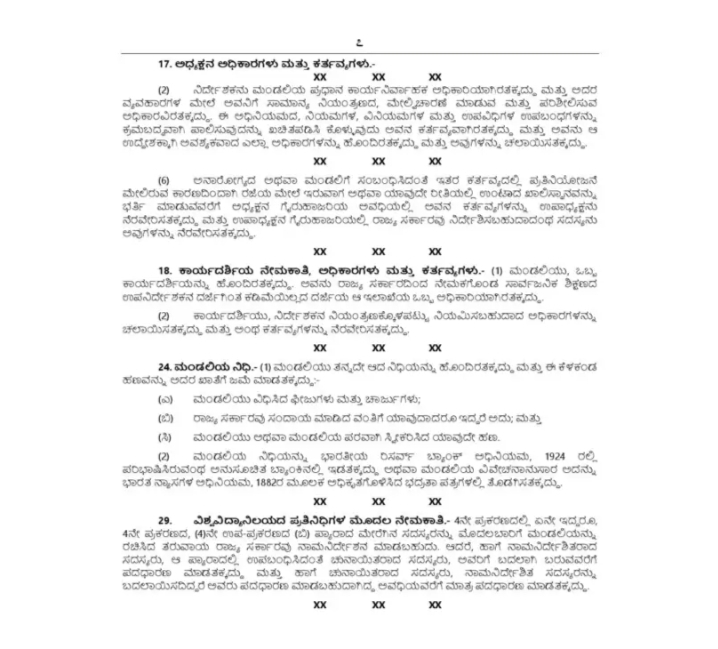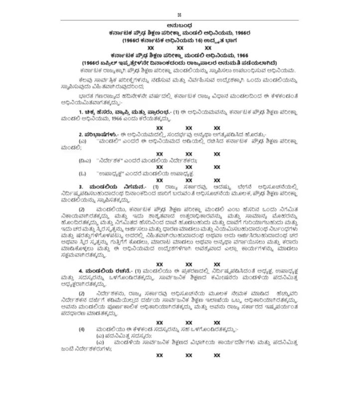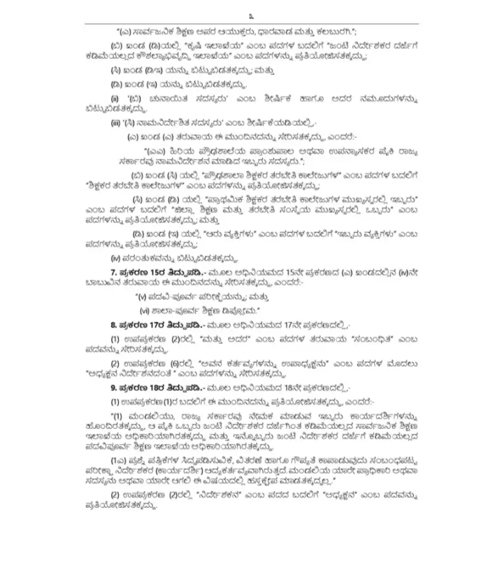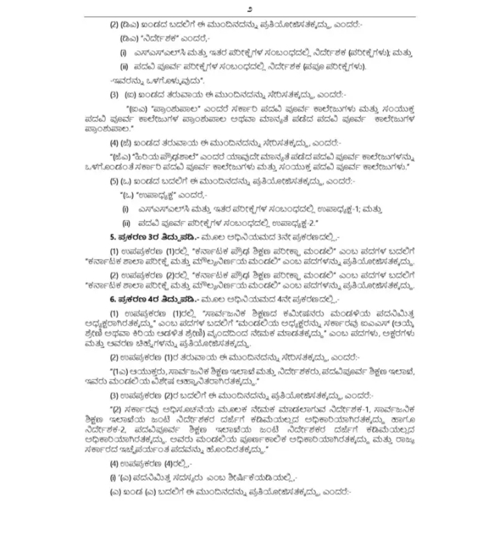 ಸಾರ್ವಜನಿಕ ಶಿಕ್ಷಣದ ಕಮೀಷನರು ಮಂಡಳಿಯ ಪದನಿಮಿತ್ತ ಅಧ್ಯಕ್ಷರಾಗಿರತಕ್ಕದ್ದು ಎಂಬ ಪದಗಳ ಬದಲಿಗೆ, ಮಂಡಳಿಯ ಅಧ್ಯಕ್ಷರನ್ನು ಸರ್ಕಾರವು ಐಎಎಸ್ ವೃಂದದಿಂದ ನೇಮಕ ಮಾಡತಕ್ಕದ್ದು. ಸಾರ್ವಜನಿಕ ಶಿಕ್ಷಣ ಇಲಾಖೆ ಆಯುಕ್ತರು ಮತ್ತು ಪದವಿ ಪೂರ್ವ ಶಿಕ್ಷಣ ಇಲಾಖೆಯ ನಿರ್ದೇಶಕರು ಮಂಡಳಿಯ ವಿಶೇಷ ಆಹ್ವಾನಿತರಾಗಿರತಕ್ಕದ್ದು ಎಂದು ಹೇಳಿದೆ.