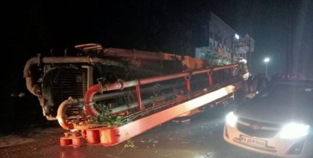 ಪುತ್ತೂರು :ಉಪ್ಪಿನಂಗಡಿಯ ಕೂಟೇಲಿನಲ್ಲಿ ಚಾಲಕನ ನಿಯಂತ್ರಣ ತಪ್ಪಿ ಲಾರಿ ಮಗುಚಿ ಬಿದ್ದ ಘಟನೆ ವರದಿಯಾಗಿದೆ.