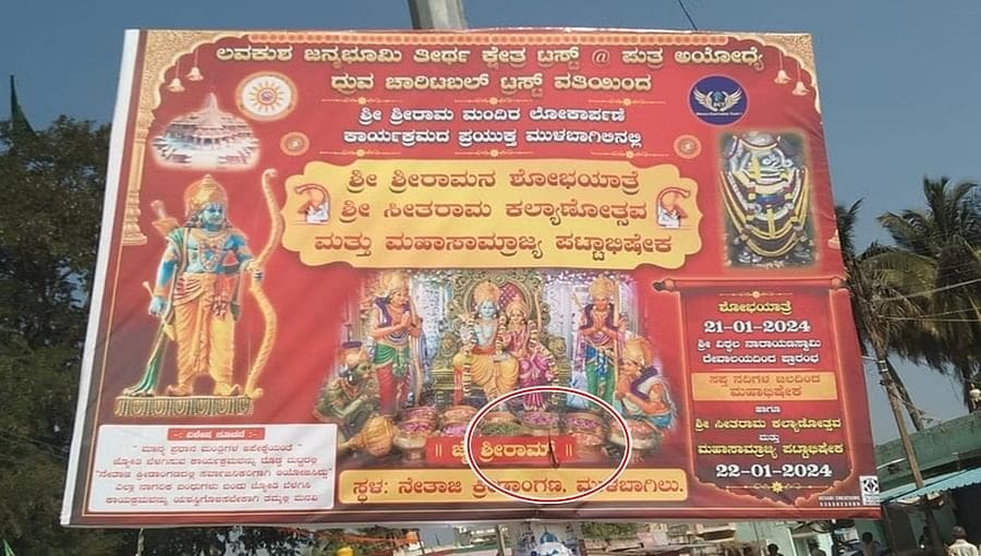 Sri Rama Flex : ಅಯೋದ್ಯೆಯಲ್ಲಿ ಜ.22 ರಂದು ರಾಮಮಂದಿರ(Ayodhya Ram Mandir)ಉದ್ಘಾಟನೆ ಹಿನ್ನೆಲೆ ಹಿಂದೂಪರ ಸಂಘಟನೆಗಳಿಂದ ಅಳವಡಿಸಿದ್ದ ಶ್ರೀರಾಮನ ಬ್ಯಾನರ್ (Sri Rama Flex)ಅನ್ನು ದುಷ್ಕರ್ಮಿಗಳು ಬ್ಲೇಡ್ನಿಂದ ಹರಿದು ಹಾಕಿರುವ ಘಟನೆ ಮುಳಬಾಗಿಲು ಪಟ್ಟಣದ ಗುಣಿಗಂಟೆಪಾಳ್ಯದಲ್ಲಿ ನಡೆದಿದೆ ಎಂದು ತಿಳಿದುಬಂದಿದೆ.