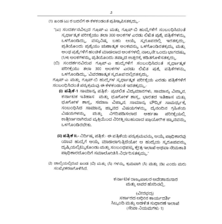 KPSC ಮಹತ್ವದ ಮಾಹಿತಿ, ಗ್ರೂಪ್-ಎ, ಬಿ ನೇಮಕಾತಿ ನಿಯಮಕ್ಕೆ ತಿದ್ದುಪಡಿ