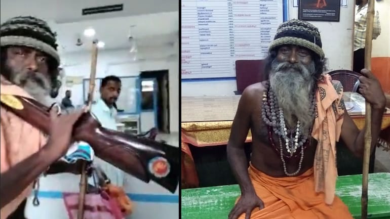 ಬ್ಯಾಂಕ್ ಲೂಟಿ ಮಾಡುತ್ತೇನೆಂದು ಬೆದರಿಕೆಯೊಡ್ಡಿದ ಸನ್ಯಾಸಿಯನ್ನು ತಿರುಮಲೈ ಸಾಮಿ ಎಂದು ಗುರುತಿಸಲಾಗಿದೆ.