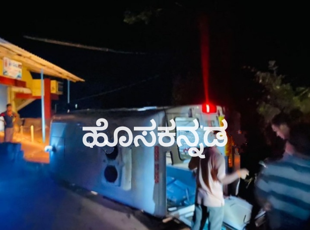 ಪುತ್ತೂರು: ರೋಗಿಯೊಬ್ಬರನ್ನು ಆಸ್ಪತ್ರೆಗೆ ಸಾಗಿಸುತ್ತಿದ್ದ ಆಂಬುಲೆನ್ಸ್ ಒಂದು ಚಾಲಕನ ನಿಯಂತ್ರಣ ತಪ್ಪಿ ರಸ್ತೆಯಲ್ಲಿ ಪಲ್ಟಿಯಾದ ಘಟನೆ ಮಧ್ಯರಾತ್ರಿ ಕುಂಬ್ರ ಕಲ್ಲರ್ಪೆಯಲ್ಲಿ ನಡೆದಿದೆ.