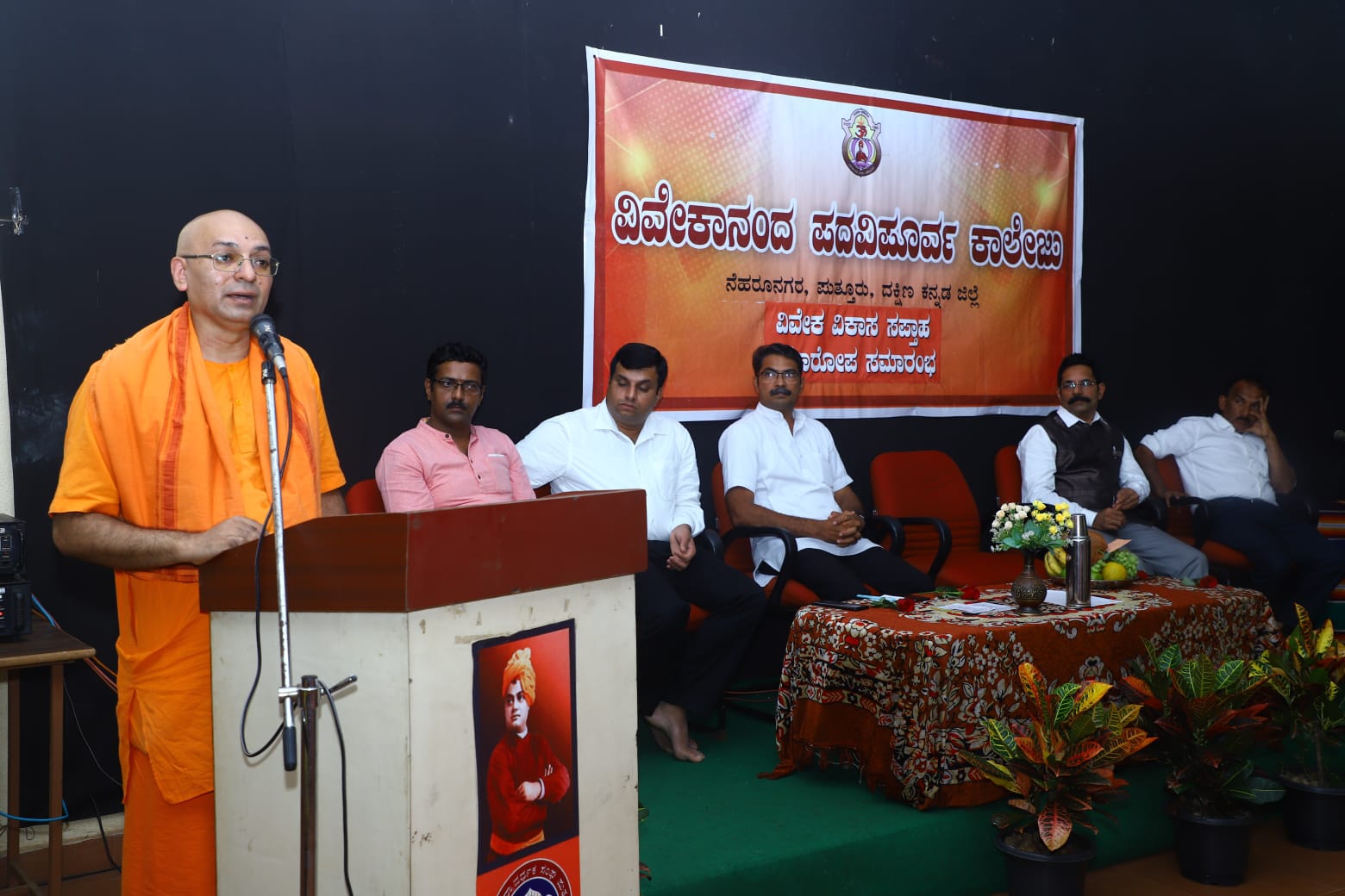 ಕಾರ್ಯಕ್ರಮದ ಅಧ್ಯಕ್ಷತೆ ವಹಿಸಿದ್ದ ವಿವೇಕಾನಂದ ಪದವಿ ಪೂರ್ವ ಕಾಲೇಜಿನ ಅಧ್ಯಕ್ಷ ರವೀಂದ್ರ .ಪಿ ಮಾತನಾಡಿ ಶಿಕ್ಷಣದ ಮೂಲ ಉದ್ದೇಶವೇ ವಿವೇಕವನ್ನು ವಿಕಾಸ ಮಾಡುವುದು .ಯುವಕರನ್ನು ಬಡಿದೆಬ್ಬಿಸಿದರೆ ಭಾರತವನ್ನು ಬಡಿದೆಬ್ಬಿಸಹುದು ಎಂದು ಹೇಳಿದರು.