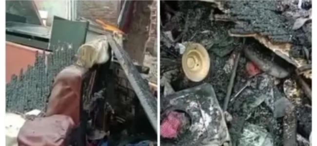 ಸ್ಫೋಟಗೊಳಿಸಿದ್ದಾನೆ. ಇದರ ಪರಿಣಾಮ, ಮನೆಗೆ ಬೆಂಕಿ ಹೊತ್ತಿಕೊಳ್ಳುತ್ತಿದ್ದಂತೆ ಸ್ಥಳೀಯರು ಅಗ್ನಿಶಾಮಕ ದಳಕ್ಕೆ ಮಾಹಿತಿ ನೀಡಿದ್ದಾರೆ.