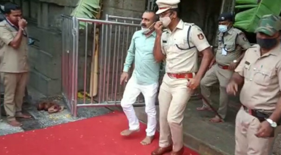 ಎಸ್ ಪಿ ಆರ್. ಚೇತನ್ ಅವರು ಶೂ ಧರಿಸಿ ಚಾಮುಂಡೇಶ್ವರಿ ದೇಗುಲ ಪ್ರವೇಶ ಮಾಡಿದರು. ಎಸ್ಪಿ ಚೇತನ್ ಒಳಗೆ ಹೋಗುತ್ತಿದ್ದಂತೆ ಹಿಂದೆ ಹೋದ ಪೊಲೀಸ್ ಸಿಬ್ಬಂದಿ, ‘ಸಾರ್ ಶೂ ಶೂ’ ಎಂದು ಕೂಗಿದರು. ಪೊಲೀಸ್ ಸಿಬ್ಬಂದಿ ಕೂಗಿಕೊಳ್ಳುತ್ತಿದ್ದಂತೆ ಹೊರಬಂದು ಶೂ ಬಿಚ್ಚಿ ನಂತರ ಒಳ ನಡೆದರು.