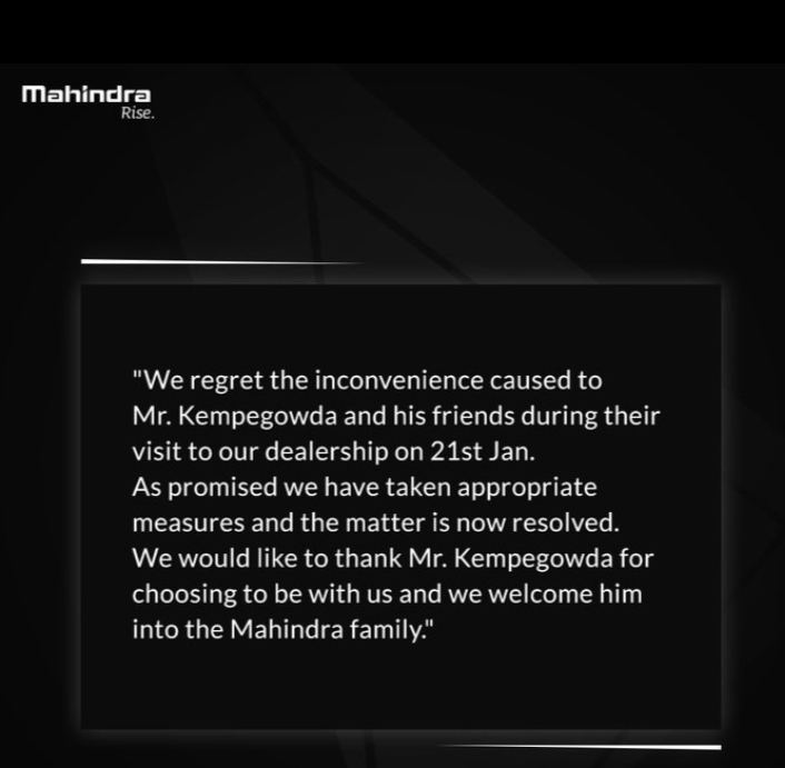 ತುಮಕೂರು ಜಿಲ್ಲೆಯ ಹೆಬ್ಬೂರು ಹೋಬಳಿಯ ರಾಮನ ಪಾಳ್ಯದ ಐದಾರು ಜನ ಸ್ನೇಹಿತರ ಜೊತೆ ಕೆಂಪೇಗೌಡ ತುಮಕೂರು ನಗರದ ಗುಬ್ಬಿ ಗೇಟ್ ಬಳಿ ಇರುವ ಮಹೀಂದ್ರಾ ಶೋರೂಂಗೆ ಗೂಡ್ಸ್ ವಾಹನ ಖರೀದಿ ಮಾಡಲು ಹೋದಾಗ, ಅಲ್ಲಿನ ಸಿಬ್ಬಂದಿ ಇವರ ವೇಷಭೂಷಣ ಕಂಡು ನಿಮಗೆ ವಾಹನ ಕೊಳ್ಳಲು ಯೋಗ್ಯತೆ ಇಲ್ಲ ಎಂದು ಹೀಯಾಳಿಸಿದಕ್ಕೆ ಪ್ರತಿಯಾಗಿ ಅರ್ಧ ಗಂಟೆಯಲ್ಲಿ 10 ಲಕ್ಷ ರೂ. ತೆಗೆದುಕೊಂಡು ಬಂದು ಮಹೀಂದ್ರಾ ಶೋರೂಂ ಗೆ ಬಂದಿದ್ದಾರೆ. ಇದನ್ನು ಕಂಡು ತಬ್ಬಿಬ್ಬಾದ ಶೋರೂಂ ಸಿಬ್ಬಂದಿ 4 ದಿವಸದಲ್ಲಿ ಗಾಡಿ ಕೊಡೋದಾಗಿ ಹೇಳಿದಾಗ, ಒಪ್ಪದ ಕೆಂಪೇಗೌಡ ಅವರು ಈಗಲೇ ಗಾಡಿ ಬೇಕೆಂದು ಹೇಳಿದಾಗ, ಸಿಬ್ಬಂದಿಗಳು ತಬ್ಬಿಬ್ಬಾಗುತ್ತಾರೆ. ಅನಂತರ ಈ ಪ್ರಕರಣ ಪೊಲೀಸ್ ಮೆಟ್ಟಿಲೇರುತ್ತೆ. ಈ ಸುದ್ದಿ ಸಾಮಾಜಿಕ ಜಾಲತಾಣದಲ್ಲಿ ಭಾರೀ ವೈರಲ್ ಆಗಿತ್ತು.