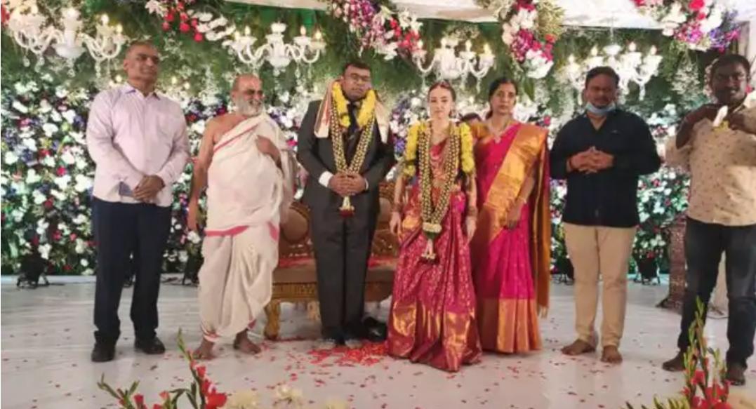 ಹೌದು.ಹೈದರಾಬಾದ್ ನ ಪ್ರತೀಕ್ ಮತ್ತು ಉಕ್ರೇನ್ ನ ಯುವತಿ ಲಿಯುಬೊವ್ ಸುಂದರ ದಾಂಪತ್ಯ ಜೀವನಕ್ಕೆ ಕಾಲಿಟ್ಟಿದ್ದಾರೆ .ಇವರ ಮದುವೆ ಉಕ್ರೇನ್ ನಲ್ಲಿ ಯುದ್ಧ ಪ್ರಾರಂಭವಾಗುವ ಮುಂಚಿನ ದಿನ ನಡೆದಿದ್ದು,ಮುತ್ತಿನ ನಗರಿಯಲ್ಲಿ ಕುಟುಂಬದ ಜೊತೆ ಮದುವೆ ರಿಸೆಪ್ಶನ್ ಮಾಡಿಕೊಂಡಿದ್ದಾರೆ.