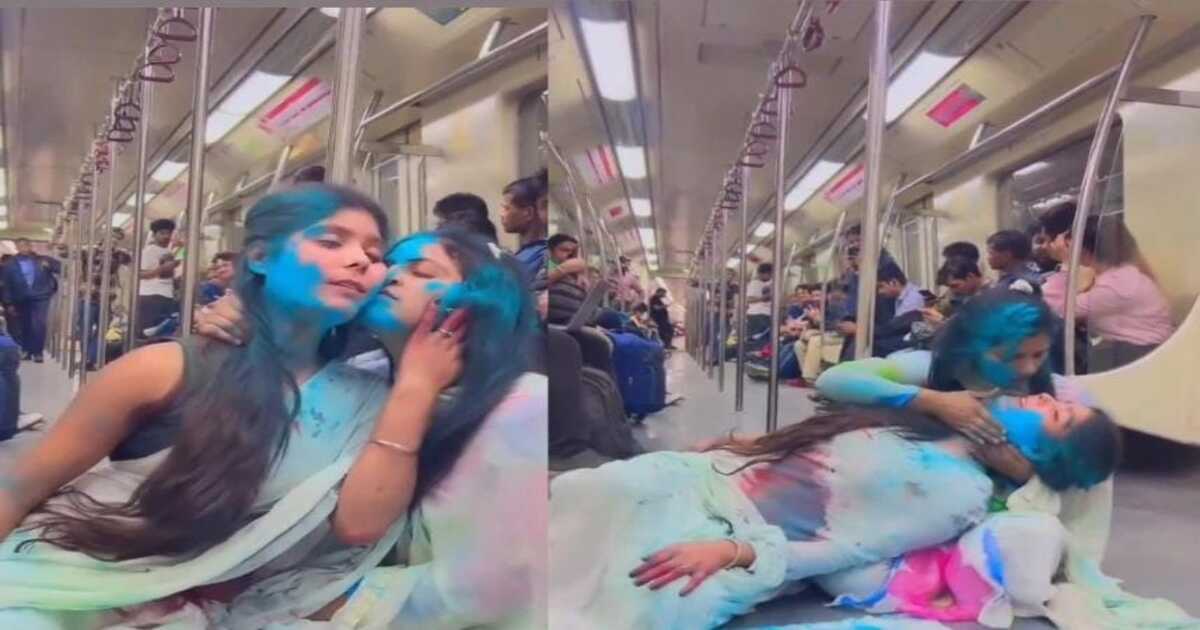 Holi Video in Metro: ಹೋಳಿ ಹಬ್ಬದ ಸಂಭ್ರಮ ಎಲ್ಲ ಕಡೆ ಆಚರಣೆ ಮಾಡಲಾಗುತ್ತಿದೆ. ಹಾಗೆನೇ ಇಲ್ಲೊಂದು ಕಡೆ ಮೆಟ್ರೋದಲ್ಲಿ ಯುವತಿಯರು ಹೋಳಿ ಸಂಭ್ರಮಾಚರಣೆಯಲ್ಲಿ ಪರಸ್ಪರ ರೋಮ್ಯಾನ್ಸ್ ಮೂಲಕ ಮಾಡಿದ್ದು, ಇದರ ವೀಡಿಯೋ ಇದೀಗ ಸೋಷಿಯಲ್ ಮೀಡಿಯಾದಲ್ಲಿ ವೈರಲ್ ಆಗ್ತಿದೆ.