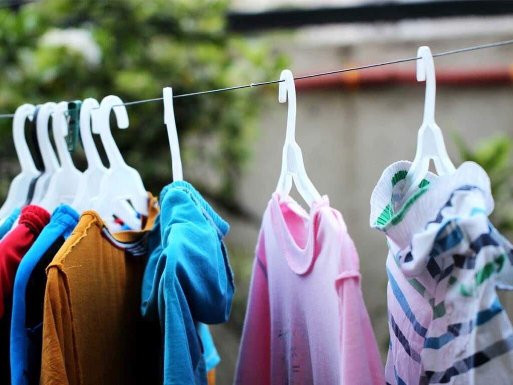 ಬಟ್ಟೆಗಳನ್ನು ಒಣಗಿಸಲು ಹ್ಯಾಂಗರ್ಗಳನ್ನು ಬಳಸಿ: