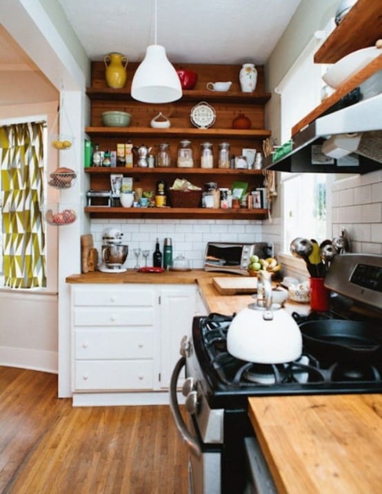 * ಕಿರಿದಾದ ಜಾಗಗಳಲ್ಲಿ ಲೋಹದ ಇಲ್ಲವೇ ಮರದ ಓಪನ್‌ ಶೆಲ್ಫಗಳನ್ನು ಅಳವಡಿಸಬಹುದು.