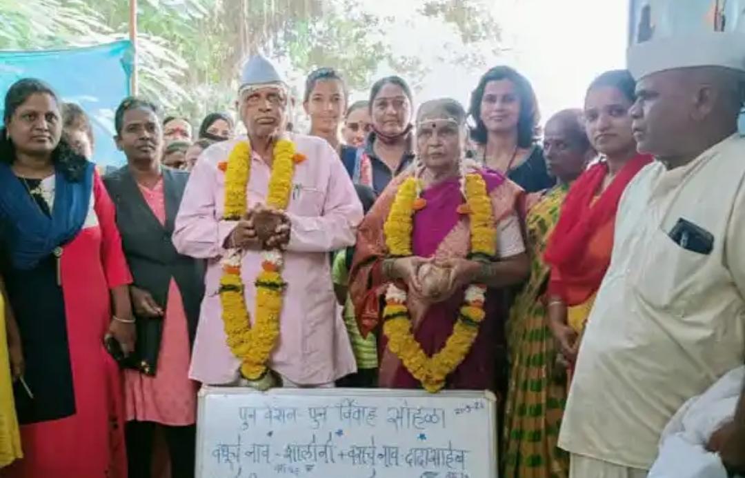 79 ವರ್ಷದ ನಿವೃತ್ತ ಶಿಕ್ಷಕ ದಾದಾಸಾಹೇಬ್​​ ಸಾಲುಂಖೆ ಹಾಗೂ 66 ವರ್ಷದ ವಿಧವೆ ಶಾಲಿನಿ ಎಂಬುವವರು ಮರು ಮದುವೆಯಾದವರಾಗಿದ್ದಾರೆ.