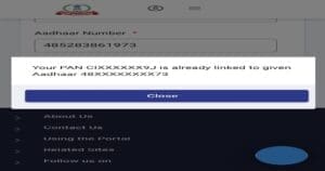 ಒಂದು ವೇಳೆ, ನಿಮ್ಮ ಪ್ಯಾನ್- ಆಧಾರ್ ನಂಬರ್ ಲಿಂಕ್ ಆಗಿದ್ದರೆ,Your PAN ALXXXXXX1B is already linked to given Aadhaar 46XXXXXXXX31 ಎಂದು ಕಾಣಿಸುತ್ತದೆ.
