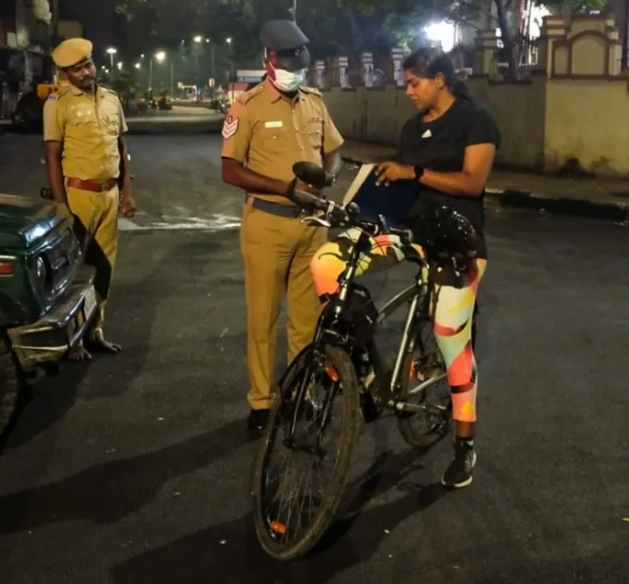 ಉತ್ತರ ಗ್ರೇಟರ್ ಚೆನ್ನೈ ಪೊಲೀಸ್ ವಿಭಾಗದ ಜಂಟಿ ಪೊಲೀಸ್ ಆಯುಕ್ತರಾದ ಆರ್. ವಿ. ರಮ್ಯಾ ಭಾರತಿ ಅವರು ಮಧ್ಯರಾತ್ರಿ ಬೈಸಿಕಲ್ನಲ್ಲಿ ನಗರದ ಪ್ರಮುಖ ಏರಿಯಾಗಳಲ್ಲಿ ಸುತ್ತಾಟ ನಡೆಸಿದ್ದಾರೆ.
