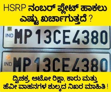 HSRP ನಂಬರ್ ಪ್ಲೇಟ್ ಅಳವಡಿಸಲು ಎಷ್ಟು ಖರ್ಚಾಗುತ್ತದೆ ಎನ್ನುವ ಸಾಮಾನ್ಯ ಪ್ರಶ್ನೆ ವಾಹನ ಮಾಲೀಕರದ್ದು. ಅದಕ್ಕೆ ನಿಖರ ಉತ್ತರ ಇಲ್ಲಿದೆ. ಆಯಾ ವಾಹನಗಳ ಆಧಾರದ ಮೇಲೆ ಹೆಚ್ ಎಸ್ ಆರ್ ಪಿ ನಂಬರ್ ಪ್ಲೇಟ್ ಅಳವಡಿಸಲು ಶುಲ್ಕ ನಿಗದಿಯಾಗಿದೆ. ಒಟ್ಟಾರೆ ನಾಲ್ಕು ವಿಧದ ವರ್ಗೀಕರಣ ಮಾಡಲಾಗಿದ್ದು ದ್ವಿಚಕ್ರ ವಾಹನಗಳು ಮೂರು ಚಕ್ರದ ವಾಹನಗಳು, ನಾಲ್ಕು ಚಕ್ರದ ವಾಹನಗಳು ಮತ್ತು ಬಸ್ಸು, ಟ್ರಕ್ಕು ಮುಂತಾದ ಕಮರ್ಷಿಯಲ್ ವಾಹನಗಳು ಎಂದು ವರ್ಗೀಕೃತ ಆಗಿದ್ದು, ಪ್ರತಿ ಕೆಟಗರಿಯಲ್ಲಿಯೂ ಇಂಪೋರ್ಟೆಡ್ ವಾಹನಗಳಿಗೆ ಮತ್ತೊಂದು ವಿಶೇಷ ಫೀಸ್ ಸ್ಲಾಬ್ ಒದಗಿಸಲಾಗಿದೆ.