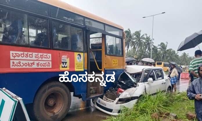 ಇಂದು ಮಧ್ಯಾಹ್ನದ ವೇಳೆಯಲ್ಲಿ ಉಡುಪಿಯಿಂದ ಭಟ್ಕಳಕ್ಕೆ ಹೋಗುತ್ತಿದ್ದ ಬಸ್ಸಿಗೆ, ಹಿಂದಿನಿಂದ ಶಿಫ್ಟ್ ಕಾರು ಡಿಕ್ಕಿ ಹೊಡೆದಿದೆ. ಘಟನೆಯಲ್ಲಿ ಚಾಲಕನಿಗೆ ಗಂಭೀರ ಗಾಯವಾಗಿದ್ದು. ಮೂವರಿಗೆ ಸಣ್ಣ ಪುಟ್ಟ ಗಾಯಗಳಾಗಿದೆ.