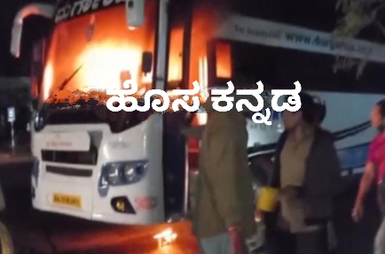 ಶಾರ್ಟ್ ಸರ್ಕ್ಯೂಟ್ನಿಂದಾಗಿ ಬಳ್ಳಾರಿಯಿಂದ ಮಣಿಪಾಲಕ್ಕೆ ಬರುತ್ತಿದ್ದ ಖಾಸಗಿ ಬಸ್ನಲ್ಲಿ ಬೆಂಕಿ ಕಾಣಿಸಿಕೊಂಡಿದೆ. ಬಸ್ ಸಂಪೂರ್ಣ ಸುಟ್ಟು ಕರಕಲಾಗಿದ್ದು, ಬಸ್ನಲ್ಲಿದ್ದ ಪ್ರಯಾಣಿಕರು, ಚಾಲಕ, ನಿರ್ವಾಹಕರು ಅದೃಷ್ಟವಶಾತ್ ಪ್ರಾಣಾಪಾಯದಿಂದ ಪಾರಾಗಿದ್ದಾರೆ ಎಂದು ತಿಳಿದು ಬಂದಿದೆ.