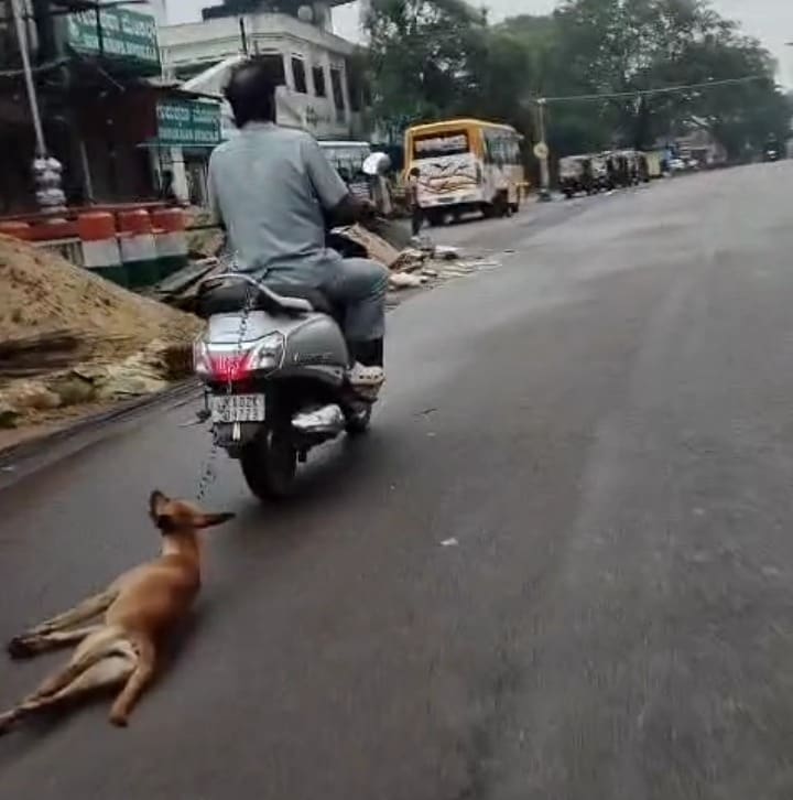 ಪಾಪಿಯೋರ್ವ ನಾಯಿಯೊಂದನ್ನು ತನ್ನ ಸ್ಕೂಟರ್‌ ಗೆ ಕಟ್ಟಿ ಇಡೀ ಮಂಚಕಲ್ಲಿನ ಪೇಟೆಯಲ್ಲಿ ಎಳೆದುಕೊಂಡು ಹೋಗಿರುವ ದೃಶ್ಯವೊಂದು ವೈರಲ್‌ ಆಗಿದೆ. ಈ ಘಟನೆಯ ದೃಶ್ಯ ಸಾಮಾಜಿಕ ಜಾಲತಾಣದಲ್ಲಿ ವೈರಲ್‌ ಆಗಿದೆ.