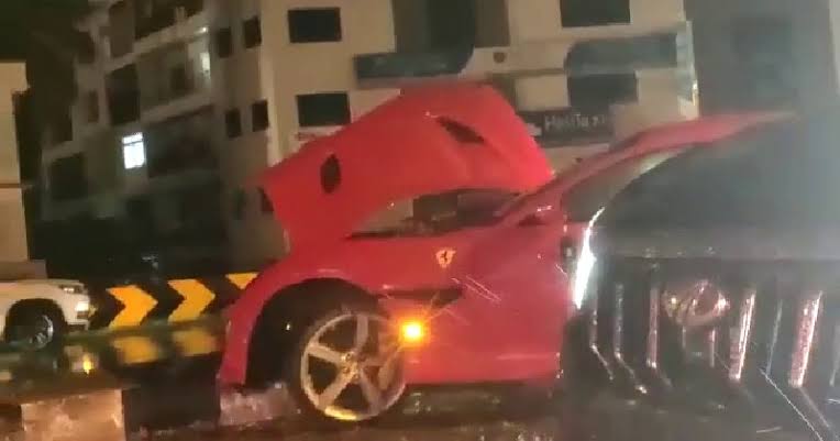 ಬೆಂಗಳೂರಿನ ಯಲಹಂಕ ಫ್ಲೈ ಓವರ್ ಮೇಲೆ ಚಾಲಕನ ನಿಯಂತ್ರಣ ತಪ್ಪಿದ ಕಾರು ರಸ್ತೆ ವಿಭಜಕಕ್ಕೆ ಡಿಕ್ಕಿ ಹೊಡೆದಿದೆ. ಡಿಕ್ಕಿಯ ರಭಸಕ್ಕೆ ಫೆರಾರಿ ಕಾರಿನಲ್ಲಿದ್ದ ಏರ್ ಬ್ಯಾಗ್ಗಳು ಓಪನ್ ಆಗಿದ್ದರಿಂದ ಭಾರೀ ಅನಾಹುತ ಸ್ವಲ್ಪದರಲ್ಲೇ ತಪ್ಪಿದೆ.