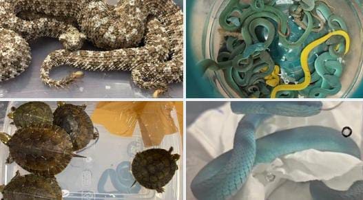 ಮುಂಬೈ ವಿಮಾನ ನಿಲ್ದಾಣದಲ್ಲಿ ಅಧಿಕಾರಿಗಳು ರಾತ್ರಿಯ ತಪಾಸಣೆಯ ಸಮಯದಲ್ಲಿ ಥೈಲ್ಯಾಂಡ್‌ನಿಂದ ಆಗಮಿಸಿದ ಪ್ರಯಾಣಿಕನೊಬ್ಬನ ಲಗೇಜ್‌ನಲ್ಲಿ 48 ವಿಷಕಾರಿ ಹಾವುಗಳು ಮತ್ತು ಐದು ಆಮೆಗಳನ್ನು ಕಂಡುಹಿಡಿದಿದ್ದಾರೆ. ಅಲ್ಲದೇ ಜೇಡ ಬಾಲದ ಕೊಂಬಿನ ವೈಪ‌ರ್ ಮತ್ತು ಇಂಡೋನೇಷಿಯನ್ ಪಿಟ್ ವೈಪರ್ ಕೂಡಾ ಸೇರಿತ್ತು.