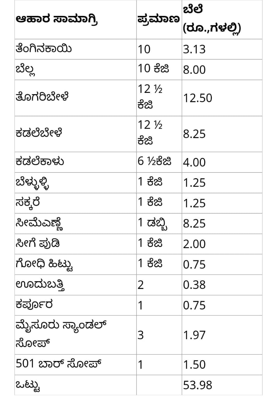 ಗ್ರಾಹಕರು ಮಾಡಿಕೊಟ್ಟ ಪಟ್ಟಿಯಲ್ಲಿಯೇ ಅಂಗಡಿ ಮಾಲೀಕ ಬೆಲೆ ಬರೆದು ಒಟ್ಟು ಎಷ್ಟು ಹಣ ಎಂದು ನಮೂದಿಸಿದ್ದಾರೆ. ಸಕ್ಕರೆ, ಬೆಲ್ಲ ಸೇರಿದಂತೆ ಸುಮಾರು 10ಕ್ಕೂ ಹೆಚ್ಚು ಆಹಾರ ಸಾಮಾಗ್ರಿಗಳಿಗೆ 53 ರೂಪಾಯಿ ಬಿಲ್ ಆಗಿದೆ. 1 ಕೆಜಿ ಸಕ್ಕರೆ ಬೆಲೆ 1.25 ರೂಪಾಯಿ ಆಗಿದೆ. ಇಂದು 1 ಕೆಜಿ ಸಕ್ಕರೆ 50 ರಿಂದ 55 ರೂಪಾಯಿಯ ಆಸುಪಾಸಿನಲ್ಲಿ ಸಿಗುತ್ತಿದ್ದು, ಹಲವರ ಹುಬ್ಬೇರುವಂತೆ ಮಾಡಿದೆ.