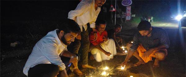 ಬುಧವಾರ ಸಂಜೆ ಬೆಳ್ತಂಗಡಿ ಸಮೀಪದ ಲಾಯಿಲ ಗ್ರಾಮದ ರಾಘವೇಂದ್ರ ಮಠದ ಹತ್ತಿರ ರಾಷ್ಟ್ರೀಯ ಹೆದ್ದಾರಿಯ ರಸ್ತೆ ಗುಂಡಿಗಳಲ್ಲಿ ದೀಪ ಹಚ್ಚಿ ದೀಪಾವಳಿ ಆಚರಣೆ ಮಾಡಲಾಯಿತು.