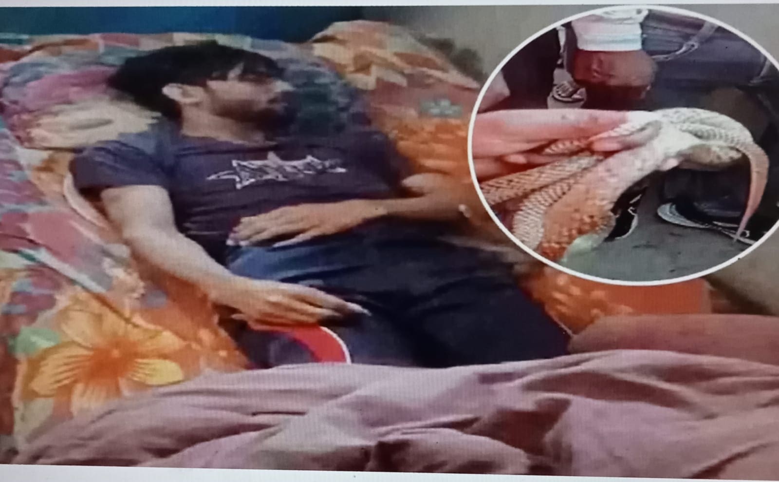 ಅಮಿತ್ ಅಲಿಯಾಸ್ ಮಿಕ್ಕಿ ಎಂಬಾತ ಮಲಗಿದ್ದು, ಈತ ಕೂಲಿ ಕಾರ್ಮಿಕ ಮೂವರು ಮಕ್ಕಳ ತಂದೆ. ಶನಿವಾರ ರಾತ್ರಿ ಕೆಲಸ ಮುಗಿಸಿ ಮನೆಗೆ ಹಿಂದಿರುಗಿದ್ದು, ಊಟ ಮಾಡಿ ಎಂದಿನಂತೆ ಮಲಗಿದ್ದಾನೆ. ಭಾನುವಾರ ಬೆಳಿಗ್ಗೆ 5.30ಕ್ಕೆ ಕುಟುಂಬ ಸದಸ್ಯರು ಅವನನ್ನು ಎಬ್ಬಿಸಲು ಕೋಣೆಗೆ ಹೋದಾಗ, ಆತ ಅಲುಗಾಡದೇ ಇರುವುದನ್ನು ಕಂಡು ಶಾಕ್ಗೊಳಗಾಗಿದ್ದಾರೆ. ಆತನನ್ನು ಅಲ್ಲಾಡಿಸಿ ಎಬ್ಬಿಸಲು ಪ್ರಯತ್ನ ಮಾಡಿದಾಗ ಆತನ ದೇಹದ ಕೆಳಗೆ ಹಾವು ಕುಳಿತಿದ್ದನ್ನು ನೋಡಿ ದಂಗಾಗಿದ್ದಾರೆ. ಕೂಡಲೇ ಆತನನ್ನು ಆಸ್ಪತ್ರೆಗೆ ಸಾಗಿಸಲಾಗಿದೆ. ವೈದ್ಯರು ಬಂದು ಆತ ಮೃತ ಹೊಂದಿರುವುದಾಗಿ ಹೇಳಿದ್ದಾರೆ.