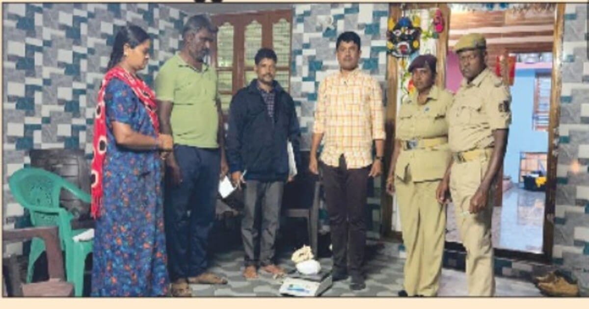 ಕೊಳ್ಳೇಗಾಲ ವಲಯ ವ್ಯಾಪ್ತಿಯ ಹನೂರು ತಾಲೂಕಿನ ಹೂಗ್ಯಂ ಗ್ರಾಮದ ಬಸ್ ನಿಲ್ದಾಣದ ಬಳಿ ಅಬಕಾರಿ ವೃತ್ತ ನಿರೀಕ್ಷಕ ದಯಾನಂದ ನೇತೃತ್ವದ ತಂಡ ಗಸ್ತು ನಡೆಸುತ್ತಿದ್ದ ಸಂದರ್ಭದಲ್ಲಿ ಮನೆಯೊಂದರಲ್ಲಿ ಅಕ್ರಮ ಗಾಂಜಾ ಶೇಖರಣೆ ಮಾಡಿರುವ ಬಗ್ಗೆ ಖಚಿತ ಮಾಹಿತಿ ದೊರೆತಿತ್ತು. ಮಾಹಿತಿ ಮೇರೆಗೆ ಕುಂಜಮ್ಮ ಎಂಬುವರ ಮನೆಯ ಮೇಲೆ ದಾಳಿ ನಡೆಸಿ ಪರಿಶೀಲನೆ ನಡೆಸಿದಾಗ ಕಪ್ಪು ಬಣ್ಣದ ಕವರ್ ನಲ್ಲಿ 212 ಗ್ರಾಂ ಹೂ, ಮೊಗ್ಗು ತೆನೆ ಮತ್ತು ಬೀಜಗಳಿಂದ ಕೂಡಿದ ಒಣ ಗಾಂಜಾ ಶೇಖರಣೆ ಮಾಡಿರುವುದು ಕಂಡು ಬಂದಿದೆ.