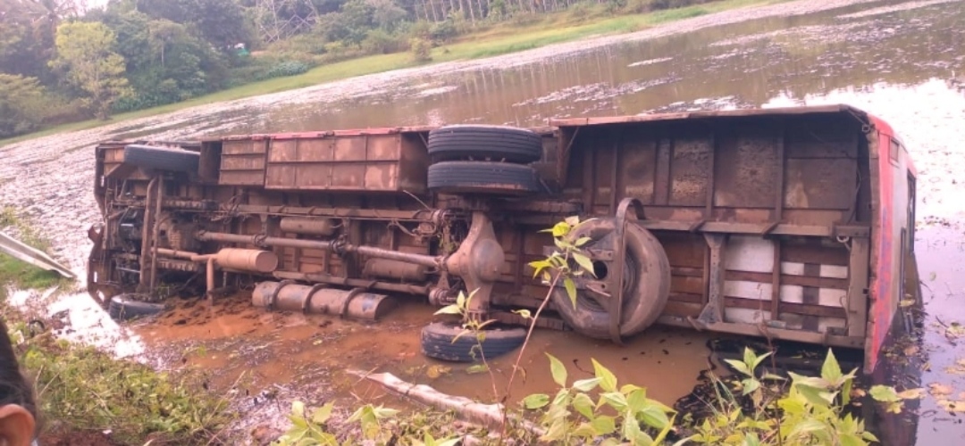 ಅಪಘಾತ ತಪ್ಪಿಸಲು ಹೋಗಿ ಕೆರೆಗೆ ಉರುಳಿದ ಕೆಎಸ್ಸಾರ್ಟಿಸಿ ಬಸ್