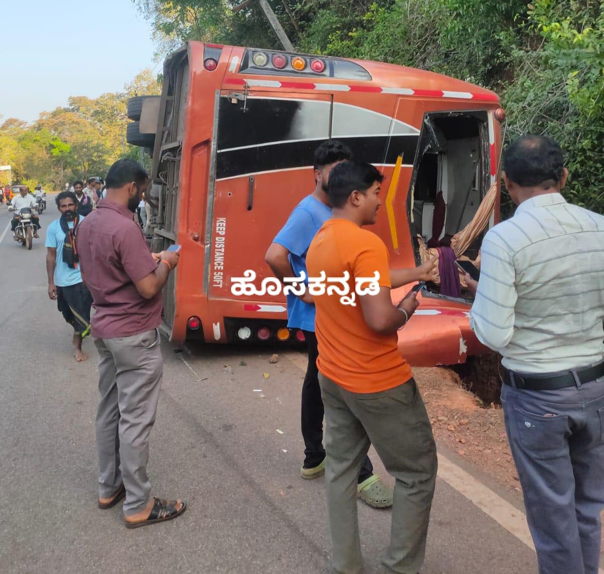 ಕಾರವಾರ : ಹೊನ್ನಾವರ ಬಾಳಗದ್ದೆ ಬಳಿ ಬಸ್ ಪಲ್ಟಿಯಾಗಿ ಬಸ್ನಲ್ಲಿದ್ದ ಪ್ರವಾಸಿಗರಿಗೆ ಗಂಭೀರ ಗಾಯವಾಗಿರುವ ಘಟನೆ ನಡೆದಿದೆ. ಈ ಘಟನೆಯಲ್ಲಿ 8 ಜನ ಪ್ರವಾಸಿಗರು ಗಂಭೀರವಾಗಿ ಗಾಯಗೊಂಡಿದ್ದಾರೆ. ಈ ಘಟನೆ ಇಂದು ಬೆಳಿಗ್ಗೆ ನಡೆದಿದೆ.