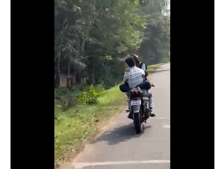 ಆಂದ್ರಪ್ರದೇಶದ ವಿಶಾಖಪಟ್ಟಣಂನ ಪ್ರಧಾನ ಮಂತ್ರಿ ರಸ್ತೆಯಲ್ಲಿ ಹಾಡಹಗಲೇ ಯುವಕನೊಬ್ಬ ಬೈಕ್ ಪೆಟ್ರೋಲ್ ಟ್ಯಾಂಕ್ ಮೇಲೆ ಕೂರಿಸಿ ವಿಚಿತ್ರವಾಗಿ ಪ್ರೀತಿ ನಿವೇದನೆ ಮಾಡುತ್ತ ಲವರ್ಸ್ ಜಾಲಿ ರೈಡ್ ಮಾಡಿದ ವಿಚಿತ್ರವಾದ ವಿಡಿಯೋ ವೈರಲ್ ಆಗಿದೆ. ಅಷ್ಟೇ ಅಲ್ಲದೆ ಈ ಘಟನೆ ನಡೆದ ಎರಡೇ ಗಂಟೆಗಳಲ್ಲಿ ಸ್ಟೀಲ್ ಪ್ಲಾಂಟ್ ಪೊಲೀಸರು ದ್ವಿಚಕ್ರ ವಾಹನ ಚಲಾಯಿಸುತ್ತಿದ್ದ ಯುವಕ ಮತ್ತು ಮಹಿಳೆಯನ್ನು ವಶಕ್ಕೆ ಪಡೆದಿದ್ದಾರೆ. ಅವರಿಬ್ಬರ ವಿರುದ್ಧ ಪ್ರಕರಣ ದಾಖಲಾಗಿದ್ದು, ವಾಹನವನ್ನು ವಶಪಡಿಸಿಕೊಳ್ಳಲಾಗಿದೆ.