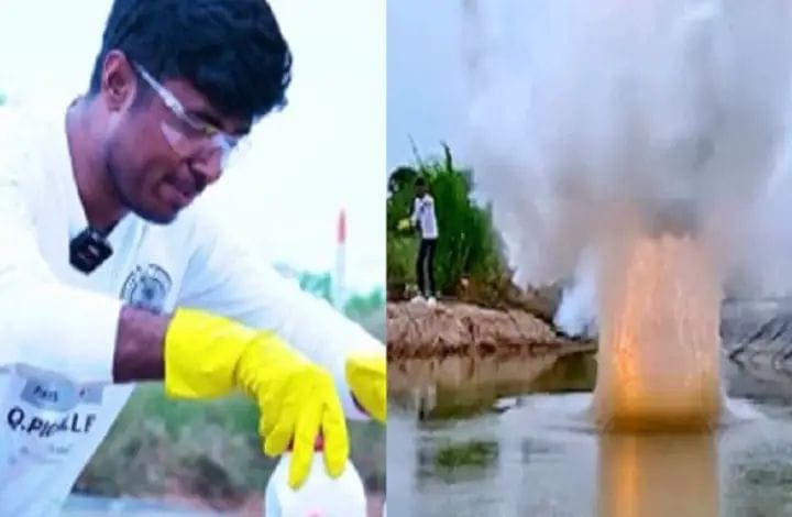 ಹೌದು, ವಿಜ್ಞಾನದ ಪ್ರಯೋಗದ ಹೆಸರಿನಲ್ಲಿ ವಿಡಿಯೋವೊಂದನ್ನು ಮಾಡಿ ಸೋಶಿಯಲ್ ಮೀಡಿಯಾದಲ್ಲಿ ಹಂಚಿಕೊಂಡಿದ್ದಾರೆ. ಪ್ರಯೋಗದಲ್ಲಿ ನೀರಿಗೆ ಸೋಡಿಯಮ್ ಬೆರೆಸಿ ನೀರಿನಾಳದಲ್ಲಿ ಬ್ಲಾಸ್ಡ್ ಮಾಡಿದ್ದಾರೆ. ಕೆಮಿಕಲ್ ಹಾಕಿದ್ದಾಗ ಬಾಂಬ್ ಬ್ಲಾಸ್ಟ್ ತರ ಸ್ಪೋಟವಾಗಿದೆ.