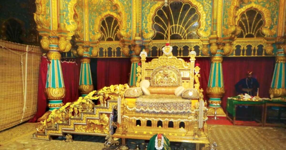 Mysore Dasara: ದಸರಾ ಮಹೋತ್ಸವದ ವೇಳೆ ರಾಜವಂಶಸ್ಥ ಯದುವೀರ ಕೃಷ್ಣದತ್ತ ಚಾಮರಾಜ ಒಡೆಯರ್ ನಡೆಸುವ ಖಾಸಗಿ ದರ್ಬಾರ್ ಗಾಗಿ ಮಂಗಳವಾರ ಅರಮನೆಯ ಸ್ಟ್ರಾಂಗ್ ರೂಮ್ನಿಂದ ಚಿನ್ನದ ಸಿಂಹಾಸನ ಹಾಗೂ ಬೆಳ್ಳಿ ಭದ್ರಾಸನದ ಐಡಿಭಾಗಗಳನ್ನು ಬಿಗಿ ಭದ್ರತೆಯಲ್ಲಿ ತಂದು ದರ್ಬಾರ್ ಹಾಲ್ ಹಾಗೂ ಕನ್ನಡಿ ತೊಟ್ಟಿಯಲ್ಲಿ ಜೋಡಣೆ ಮಾಡಲಾಯಿತು.