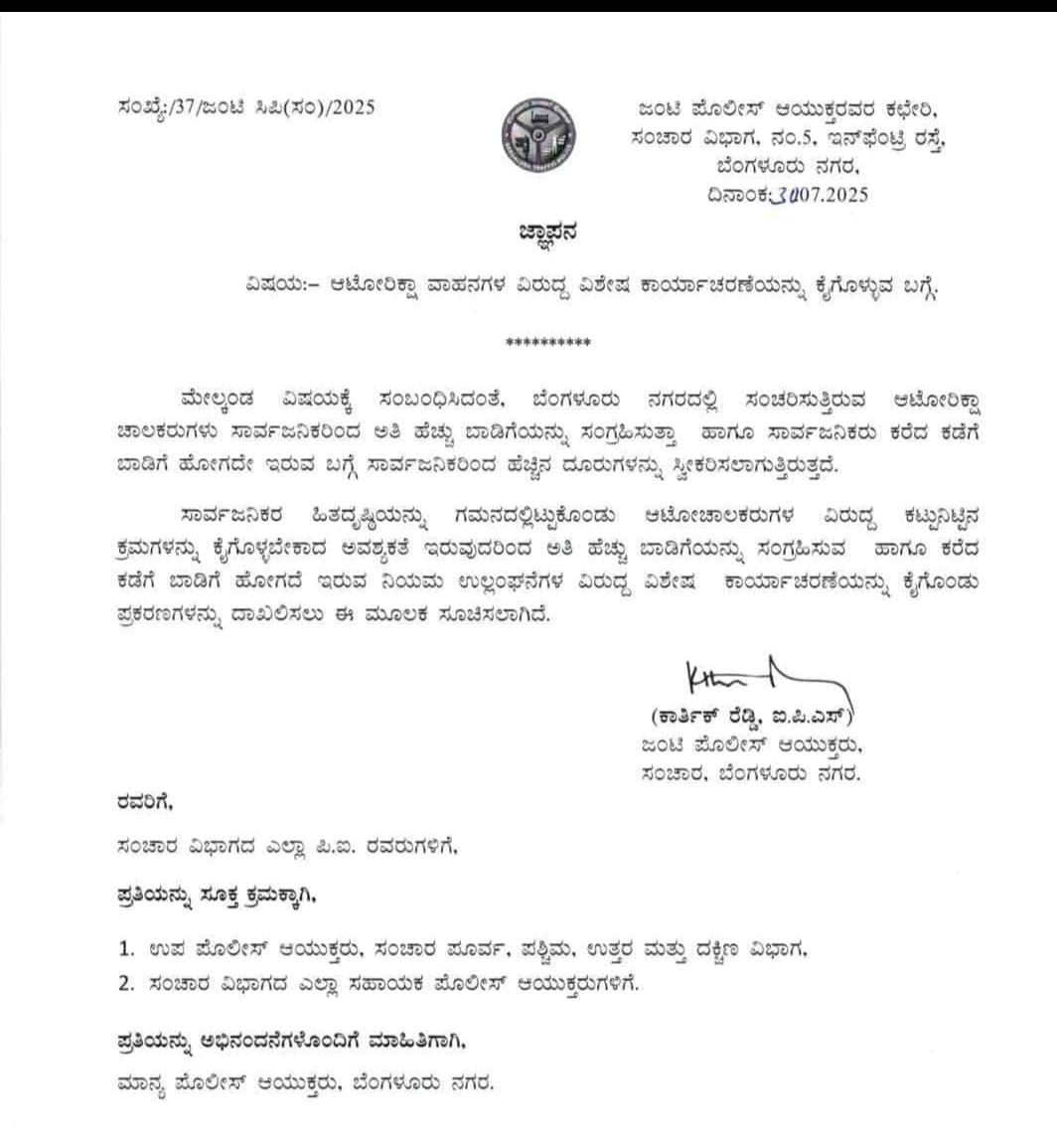 ಅತಿ ಹೆಚ್ಚು ಬಾಡಿಗೆ ಹಾಗೂ ಸಾರ್ವಜನಿಕರು ಕರೆದ ಕಡೆಗೆ ಹೋಗಲು ಬಹುತೇಕ ಆಟೋ ಚಾಲಕರು ನಿರಾಕರಿಸುತ್ತಾರೆ. ಈ ಹಿನ್ನೆಲೆ ಸಾರ್ವಜನಿಕರ ಹಿತದೃಷ್ಟಿಯಿಂದ ನಿಯಮ ಉಲ್ಲಂಘಿಸುವವರ ವಿರುದ್ದ ಕ್ರಮ ಕೈಗೊಳ್ಳಲು ನಿರ್ಧರಿಸಲಾಗಿದೆ. ಈ ಹಿನ್ನೆಲೆಯಲ್ಲಿ ವಿಶೇಷ ಕಾರ್ಯಚರಣೆ ಮಾಡಿ ಆ ಮೂಲಕ ಪೊಲೀಸ್ ಇಲಾಖೆ ಕ್ರಮಕ್ಕೆ ಮುಂದಾಗಿದೆ.
