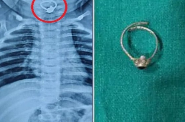 ಆದರೆ ಬಾಲಕನ ಪರಿಸ್ಥಿತಿ ಮಾತ್ರ ಸುಧಾರಿಸಲಿಲ್ಲ. ಕೂಡಲೇ ಇನ್ನೊಂದು ವೈದ್ಯರ ಬಳಿ ತೆರಳಿ ಎಕ್ಸ್ರೇ ಮಾಡಿಸಿದ್ದಾರೆ. ಆಗ ಪೋಷಕರಿಗೆ ಆತಂಕದ ಮಾಹಿತಿ ದೊರಕಿದ್ದು, ಶ್ವಾಸಕೋಶದಲ್ಲಿ ಗೋಲಾಕಾರದವ ವಸ್ತುವೊಂದು ಸಿಲುಕಿಕೊಂಡಿರುವುದು ಗೊತ್ತಾಗಿದೆ. ಕೂಡಲೇ ಶಸ್ತ್ರಚಿಕಿತ್ಸೆ ನಡೆಸಿ ಶ್ವಾಸನಾಳದಿಂದ ಹೊರ ತೆಗೆದಿದ್ದಾಗ, ಅದು ತಾಯಿಯ ಕಾಲುಂಗುರ ಎಂದು ತಿಳಿದು ಬಂದಿದೆ.