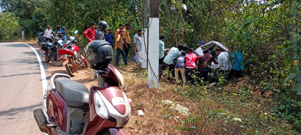 ಚಾಲಕ ನಿಯಂತ್ರಣವನ್ನು ಕಳೆದುಕೊಂಡು ಕಾರು ರಸ್ತೆ ಬದಿಯಲ್ಲಿರುವ ಪೊದೆಗೆ ಡಿಕ್ಕಿ ಹೊಡೆದಿದೆ ಎನ್ನಲಾಗಿದೆ. ಚಾಲಕನ ಸಮಯ ಪ್ರಜ್ಞೆಯಿಂದ ಸಮೀಪದಲ್ಲಿಯೇ ಇದ್ದ ವಿದ್ಯುತ್ ಕಂಬಗಳನ್ನು ತಪ್ಪಿಸಿದ್ದರಿಂದ ಯಾವುದೇ ಪ್ರಾಣಾಪಾಯ ಸಂಭವಿಸಿಲ್ಲ. ಬಳಿಕ ಸ್ಥಳೀಯರ ಸಹಾಯದಿಂದ ಕಾರನ್ನು ಮೇಲಕ್ಕೆತ್ತಲಾಯಿತು.