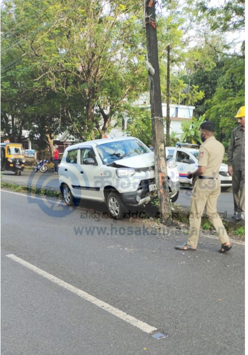 ಉಜಿರೆ ಕಾಲೇಜು ರಸ್ತೆಯಲ್ಲಿ ಸುಜುಕಿ ಕಂಪನಿಯ ಕಾರೊಂದು ನಿಯಂತ್ರಣ ತಪ್ಪಿ ವಿದ್ಯುತ್ ಕಂಬಕ್ಕೆ ಡಿಕ್ಕಿ ಹೊಡೆದ ಘಟನೆ ಇಂದು ಸಂಜೆ ನಡೆದಿದೆ.