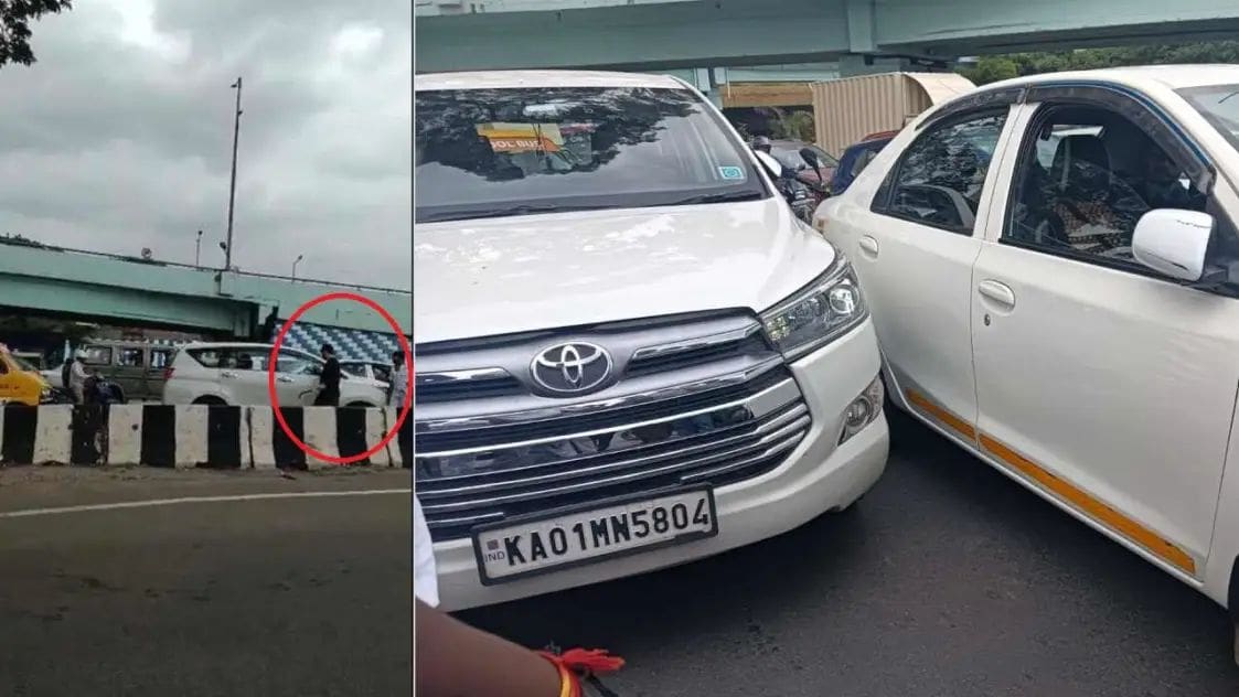 Bengaluru : ಕಾರು ಟಚ್ ಆಗಿದ್ದನ್ನು ಪ್ರಶ್ನಿಸಿದ್ದಕ್ಕೆ ಟ್ಯಾಕ್ಸಿ ಚಾಲಕನ ಮೇಲೆ ಇನ್ನೋವಾ ಕಾರು ಚಾಲಕನೊಬ್ಬ ಲಾಂಗ್ನಿಂದ ಹಲ್ಲೆಗೆ ಯತ್ನಿಸಿದ್ದಾನೆ. ಪುಂಡನ ಪುಂಡಾಟ ಕಂಡ ಸ್ಥಳದಲ್ಲಿದ್ದ ಸಾರ್ವಜನಿಕರು ಹಾಗೂ ಇತರ ವಾಹನ ಸವಾರರು ಆತನ ಇನ್ನೋವಾ ಕಾರನ್ನೇ ಪುಡಿಗಟ್ಟಿ ಕಿಡಿಗೇಡಿಯನ್ನು ಸ್ಥಳದಿಂದಲೇ ಓಟ ಕೇಳುವಂತೆ ಮಾಡಿದ ಘಟನೆ ಬೆಂಗಳೂರಿನಲ್ಲಿ ನಡೆದಿದೆ.