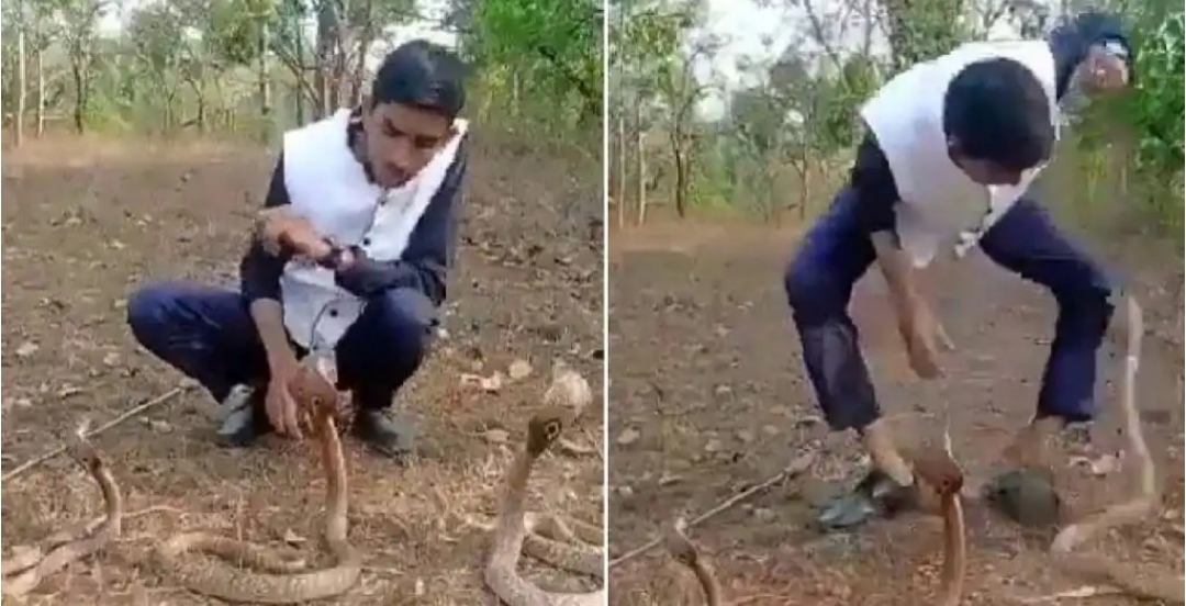 ಮೂರು ನಾಗರಹಾವಿನೊಂದಿಗೆ ಆಟಕ್ಕೆ ಕುಳಿತ ಯುವಕ|ಹಾವಿನ ಬಗೆಗೆ ಉತ್ಸಾಹಿಯಾಗಿದ್ದಾತನ ಸಾಹಸವೇ ಕೊನೆಗೆ ಆತನಿಗೆ ಮುಳುವಾಯ್ತು!