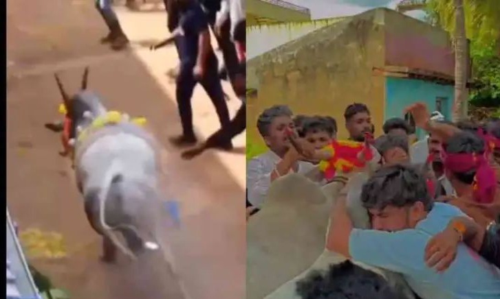 Hhaveri: ಹಾವೇರಿ ಜಿಲ್ಲೆ ಹಾನಗಲ್ ತಾಲ್ಲೂಕಿನ ಅಕ್ಕಿಆಲೂರಿನಲ್ಲಿ ನಡೆದ ಕೊಬ್ಬರಿ ಹೋರಿ ಬೆದರಿಸುವ ಸ್ಪರ್ಧೆಯಲ್ಲಿ ಓಡುವ ಸಂದರ್ಭದಲ್ಲಿ ಹೋರಿ ಒಂದು ಬಿದ್ದು ಕಾಲು ಮುರಿದುಕೊಂಡಿದೆ. ಆದರೂ ಕೂಡ ಅಖಾಡದಲ್ಲಿ ಛಲ ಬಿಡದೆ ಆ ಹೋರಿಯು ಮತ್ತೆ ಎದ್ದು ಓಡಿ ಗುರಿ ಮುಟ್ಟಿದೆ. ಮಾಲೀಕ ಬಾವುಕನಾಗಿದ್ದಾನೆ.