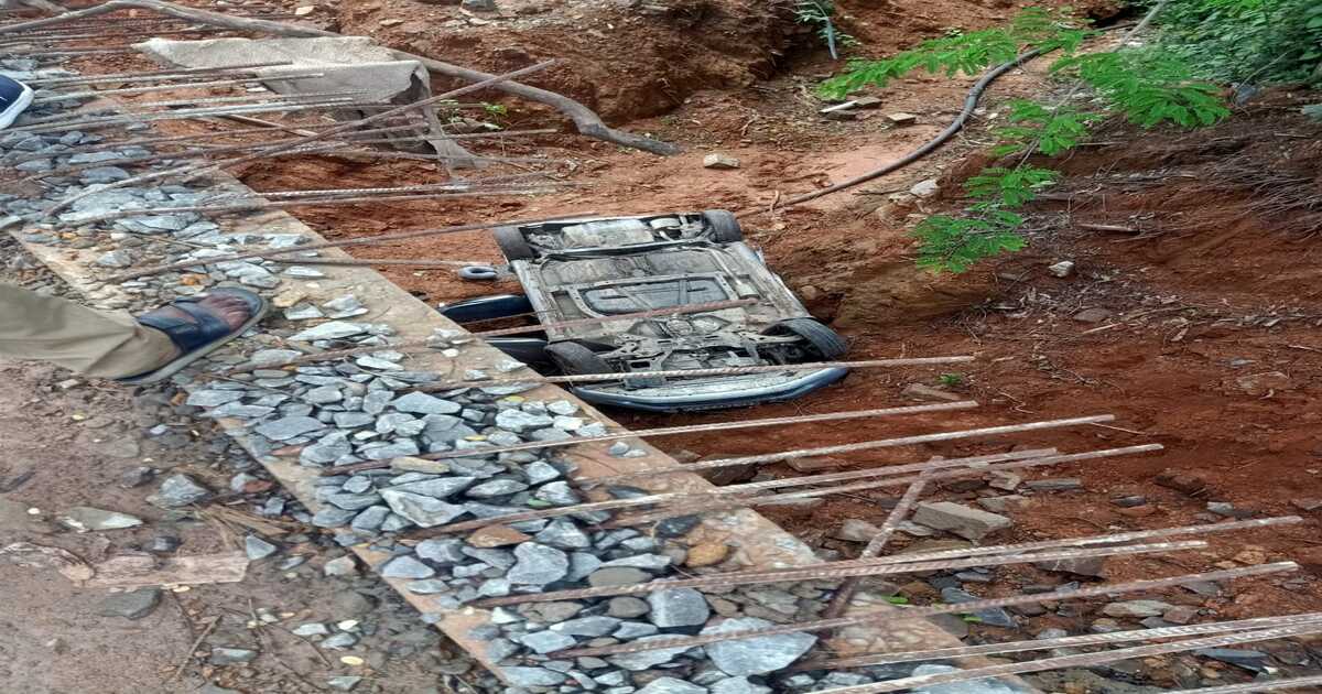 Car accident: ನೆಲ್ಯಾಡಿ: ಚಾಲಕನ ನಿಯಂತ್ರಣ ತಪ್ಪಿ ಕಾರೊಂದು ಕಿರು ಸೇತುವೆಯಿಂದ ಉರುಳಿ ಬಿದ್ದ ಘಟನೆಯೊಂದು ಶನಿವಾರ ಬೆಳಿಗ್ಗೆ ನಡೆದಿದೆ. ಈ ಘಟನೆ ನೆಲ್ಯಾಡಿಯ ಸಮೀಪ ಎಂಜಿರದಲ್ಲಿ ನಡೆದಿದೆ. ಕಾರು ಸರಿ (Car accident) ಸುಮಾರು 20 ಅಡಿ ಆಳಕ್ಕೆ ಬಿದ್ದಿದೆ. ಈ ಘಟನೆಯಲ್ಲಿ ಆರು ಮಂದಿಗೆ ಗಂಭೀರ ಗಾಯವಾಗಿದೆ ಎಂದು ತಿಳಿದು ಬಂದಿದೆ.