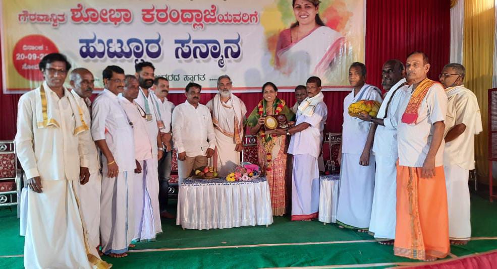 ಕಾಣಿಯೂರು: ಕೇಂದ್ರ ಕೃಷಿ ಮತ್ತು ರೈತ ಕಲ್ಯಾಣ ರಾಜ್ಯ ಸಚಿವರಾದ ಶೋಭಾ ಕರಂದ್ಲಾಜೆ ಅವರಿಗೆ ಸೆ 20ರಂದು ಚಾರ್ವಾಕ ಶ್ರೀ ಕಪಿಲೇಶ್ವರ ದೇವಸ್ಥಾನದ ಸಭಾಂಗಣದಲ್ಲಿ ಹುಟ್ಟೂರ ಸನ್ಮಾನ ನಡೆಯಿತು.