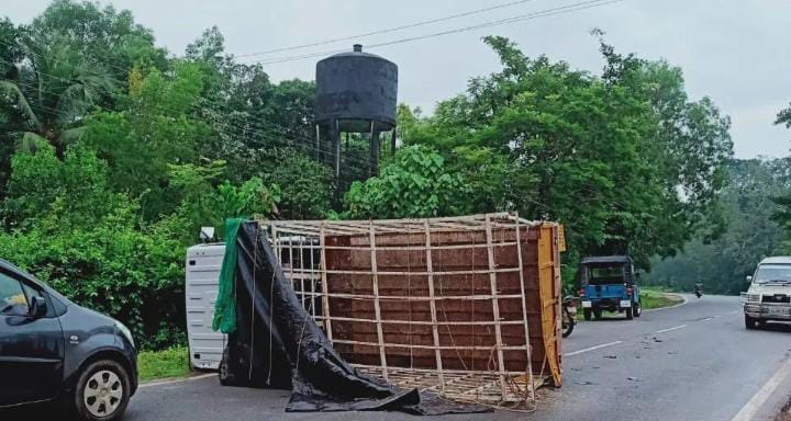 ಬೆಳ್ಳಂಬೆಳಗ್ಗೆ ಕೋಳಿ ಸಾಗಾಟದ ಲಾರಿ ಪಲ್ಟಿಯಾಗಿದೆ ಎಂಬ