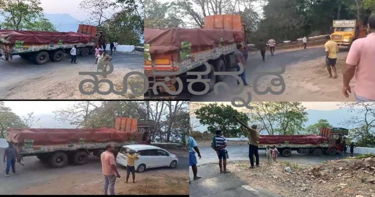 ಕಳೆದ ಮಾರ್ಚ್ 18 ರಂದು ಕೂಡಾ ಹುಬ್ಬಳ್ಳಿಯಿಂದ ಮಂಗಳೂರಿಗೆ ಹೋಗುತ್ತಿದ್ದ 16 ಚಕ್ರದ ಸಿಮೆಂಟ್ ಲಾರಿ ಚಾರ್ಮಾಡಿ ಘಾಟಿಯ ಹತ್ತನೇ ತಿರುವಿನಲ್ಲಿ ಲಾಕ್ ಆಗಿ ಜನರಿಗೆ ನಿಜಕ್ಕೂ ಸಂಕಷ್ಟಕ್ಕೀಡು ಮಾಡಿತ್ತು. ಇದೀಗ ಮತ್ತೊಮ್ಮೆ ಇಂತಹುದೇ ಘಟನೆ ನಡೆದಿದ್ದು, ಜನರು ಪರದಾಡುವಂತಾಗಿದೆ.