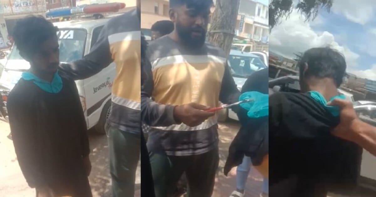 ಹೌದು, ಚಿಕ್ಕಮಗಳೂರು ನಗರದ ಮಲ್ಲಂದೂರು ರಸ್ತೆಯಲ್ಲಿ(Mallandoor Road) ಬೆರಳಿಗೆ ನೈಲ್ ಪಾಲಿಶ್ ಹಚ್ಚಿಕೊಂಡು ಶೃಂಗಾರ ಮಾಡಿಕೊಂಡು ಚಾಕು ಇಟ್ಟುಕೊಂಡ ಯುವಕನ ಸಾರ್ವಜನಿಕರ ಕೈಗೆ ಸಿಕ್ಕಿಬಿದ್ದಿದ್ದಾನೆ. ಬುರ್ಖಾ ತೊಟ್ಟು ನಗರದ ಮಲ್ಲಂದೂರು ರಸ್ತೆಯಲ್ಲಿ ಯುವಕನ ಓಡಾಟ ನಡೆಸುವಾಗ ಅನುಮಾನಗೊಂಡು ಜನರು ಹಿಡಿದಿದ್ದಾರೆ. ಬಳಿಕ ಇದು ಹುಡುಗಿ, ಹೆಂಗಸು ಯಾವುದೂ ಅಲ್ಲ, ಮೀಸೆ ಇರೋ ಹರೀಶ(Harisha), ಬಾಳೆಹೊನ್ನೂರಿನವನು (Balehonnuru) ಎಂದು ತಿಳಿದುಬಂದಿದೆ. ಬಳಿಕ ಎಲ್ಲರೂ ಸೇರಿ