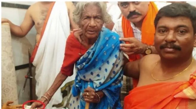 ಅಲ್ಲಿದ್ದವರೆಲ್ಲ ಆಕೆ ಭಿಕ್ಷೆ ಕೇಳುವುದಕ್ಕೆ ಎಂದು ಭಾವಿಸಿ ಆಕೆಗೆ ಬೈದು ಕಳುಹಿಸುತ್ತಿದ್ದರು. ಆದರೆ ಕೊನೆಗೆ ಆಕೆ ಅಧ್ಯಕ್ಷ ಸಿಗಲಿಲ್ಲ ಎಂದು ಸೀದಾ ದೇವಸ್ಥಾನದ ಒಳಗೆ ಹೋಗಿ ಅಲ್ಲಿದ್ದ ಸ್ವಾಮೀಜಿ ಒಬ್ಬರ ಬಳಿ ಸಾಗಿ, ತನ್ನ ಮುದುರಿದ ಸೆರಗಿನಿಂದ 500 ಮುಖ ಬೆಲೆಯ 20 ನೋಟುಗಳನ್ನು ತನ್ನ ನಡುಗುವ ಕೈಗಳಿಂದ ನೀಡಿ ಆಂಜನೇಯನಿಗೆ ಬೆಳ್ಳಿ ಮುಖವಾಡ ಮಾಡಿಸಿ ಎಂದು ಮನವಿ ಮಾಡಿಕೊಂಡು ಎಲ್ಲರಿಗೂ ಅಚ್ಚರಿ ಮೂಡಿಸಿದ್ದಾರೆ.